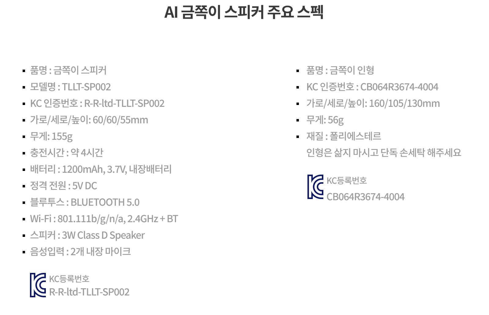 | A/S 책임자와 전화번호 또는 소비자상담 관련 전화번호 | 상품페이지 참고 |